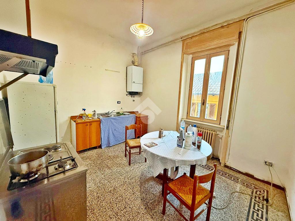 Sesto Calende. Abbazia. Appartamento trilocale termo autonomo con cantina di proprietà. L'appartamento è ubicato al secondo piano di una piccola palazzina senza ascensore. Ingresso, soggiorno, cucina abitabile, due camere matrimoniali, bagno e balconcino. L'alloggio necessita di lavori di manutenzione, gode di doppia esposizione ed il riscaldamento è autonomo con caldaia di proprietà.