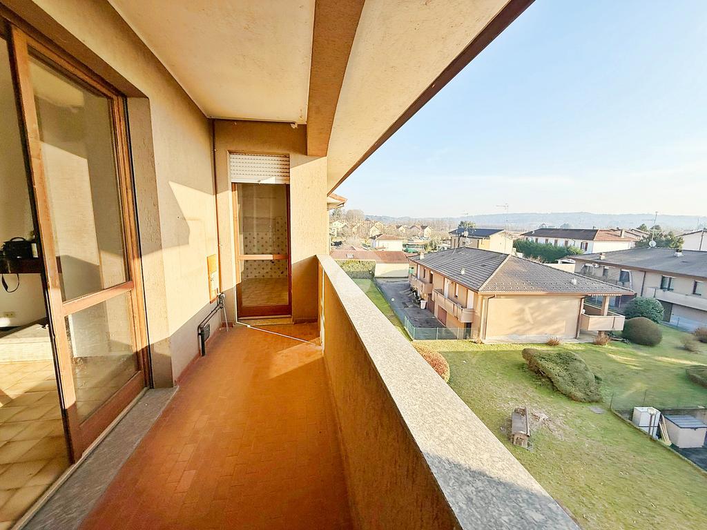 Sesto Calende. Ultimo piano con vista aperta. Appartamento trilocale con box doppio e posto auto assegnato. L'alloggio misura circa 95 metri quadri così divisi: ingresso, soggiorno con camino, cucina abitabile, due camere matrimoniali, bagno, ripostiglio e due balconi (uno nella zona giorno e l'altro nella zona notte). Riscaldamento autonomo, finestre con doppi vetri, doppia esposizione e spese condominiali contenute. Ottima luminosità.