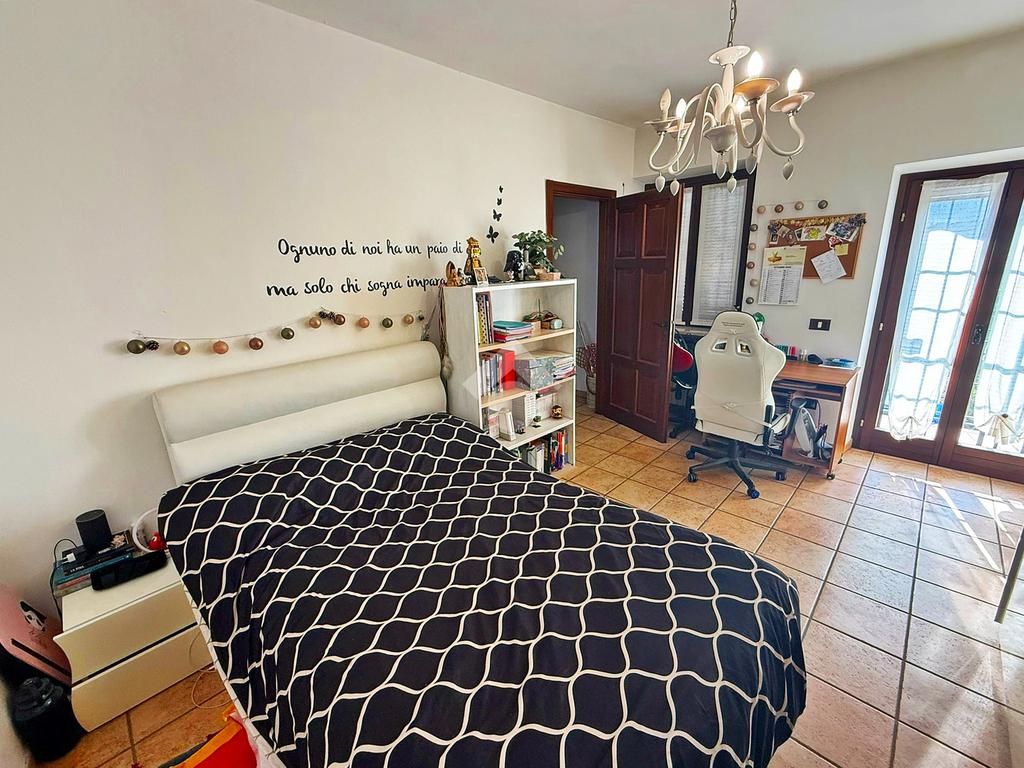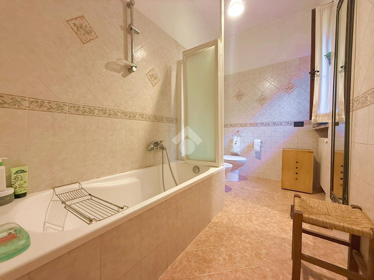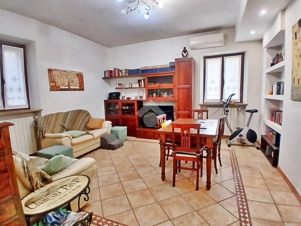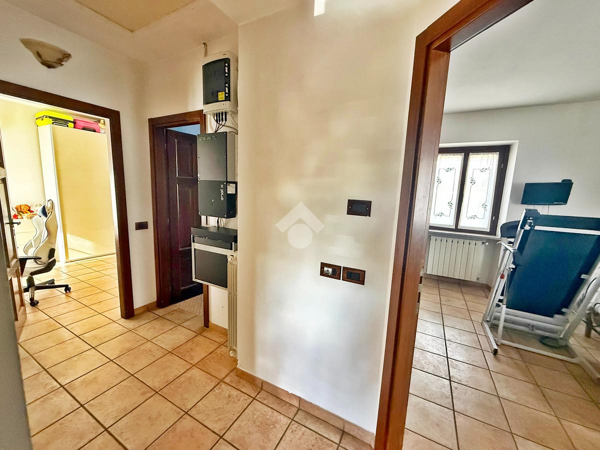 Sesto Calende. San Giorgio. Porzione finale di casa lombarda con ingresso indipendente e giardino di circa 400 metri quadri. La casa è disposta su due piani abitativi. Piano Terra: ingresso, soggiorno, cucina, bagno e tettoia per due posti auto coperti. Piano Primo: due camere matrimoniali, bagno, ripostiglio e balcone. La casa è stata ristrutturata, dispone di impianti autonomi e certificati, finestre con doppio vetro, stufa a Pellet collegata ai termosifoni e pannelli fotovoltaici. Ottima esposizione solare.
