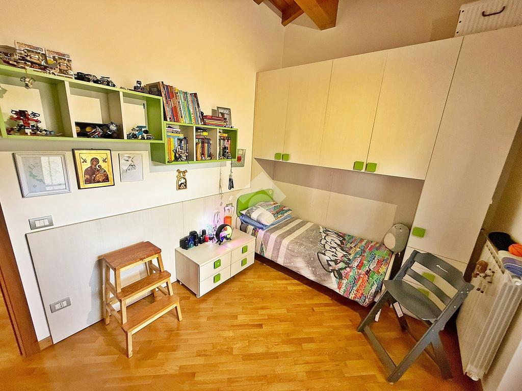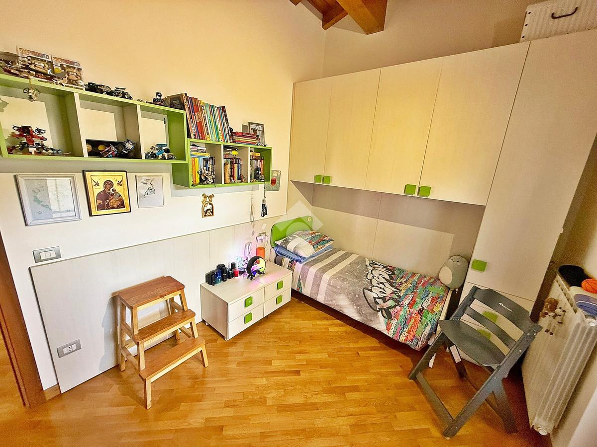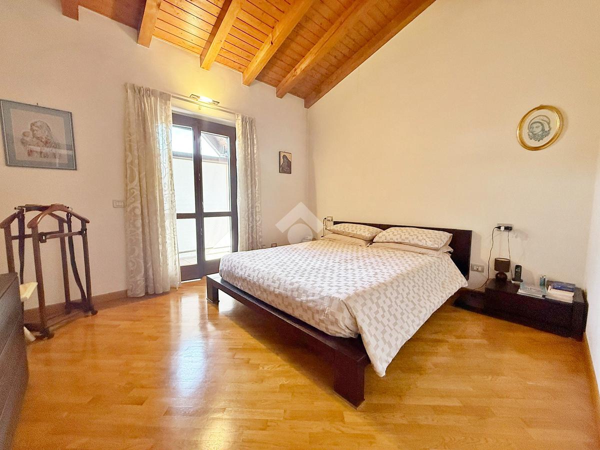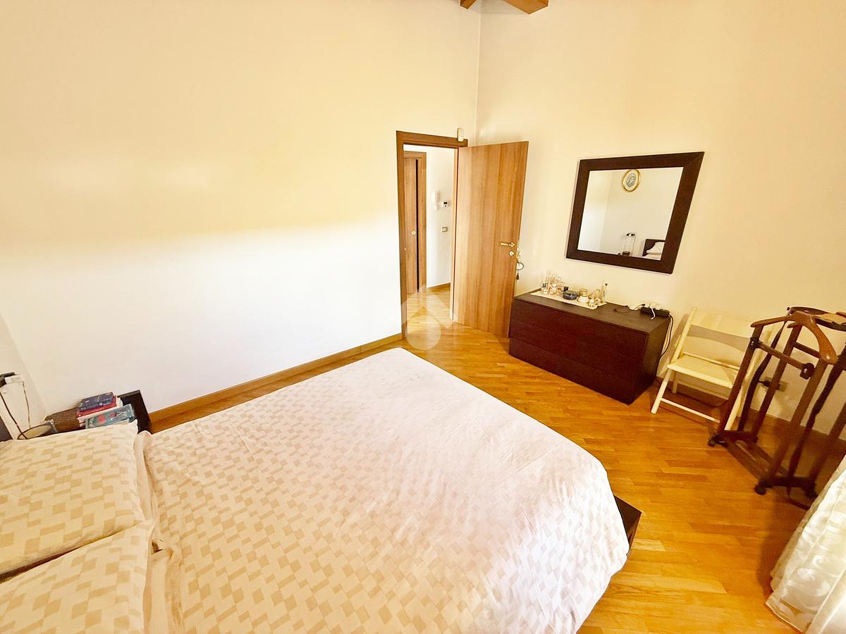 La zona notte è mansardata con travi a vista, ospita tre comode camere da letto delle quali una adibita a cabina armadio, ripostiglio, bagno con vasca e due terrazzi di cui uno da 15mq e l’altro da 23 mq.