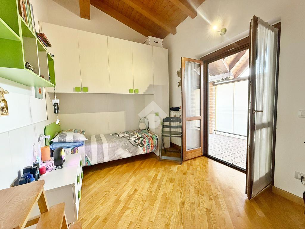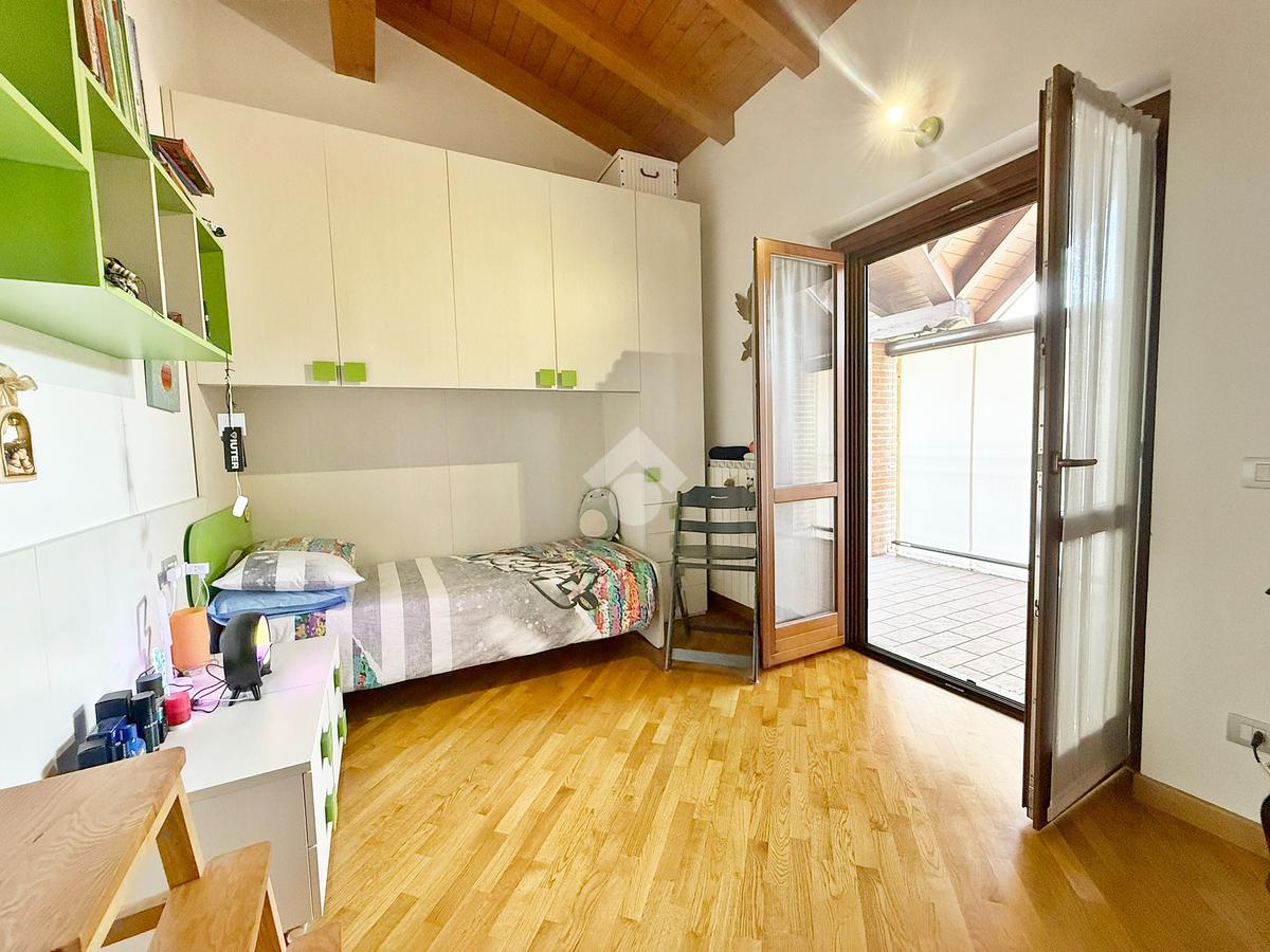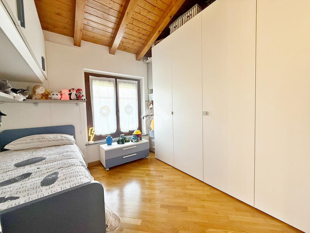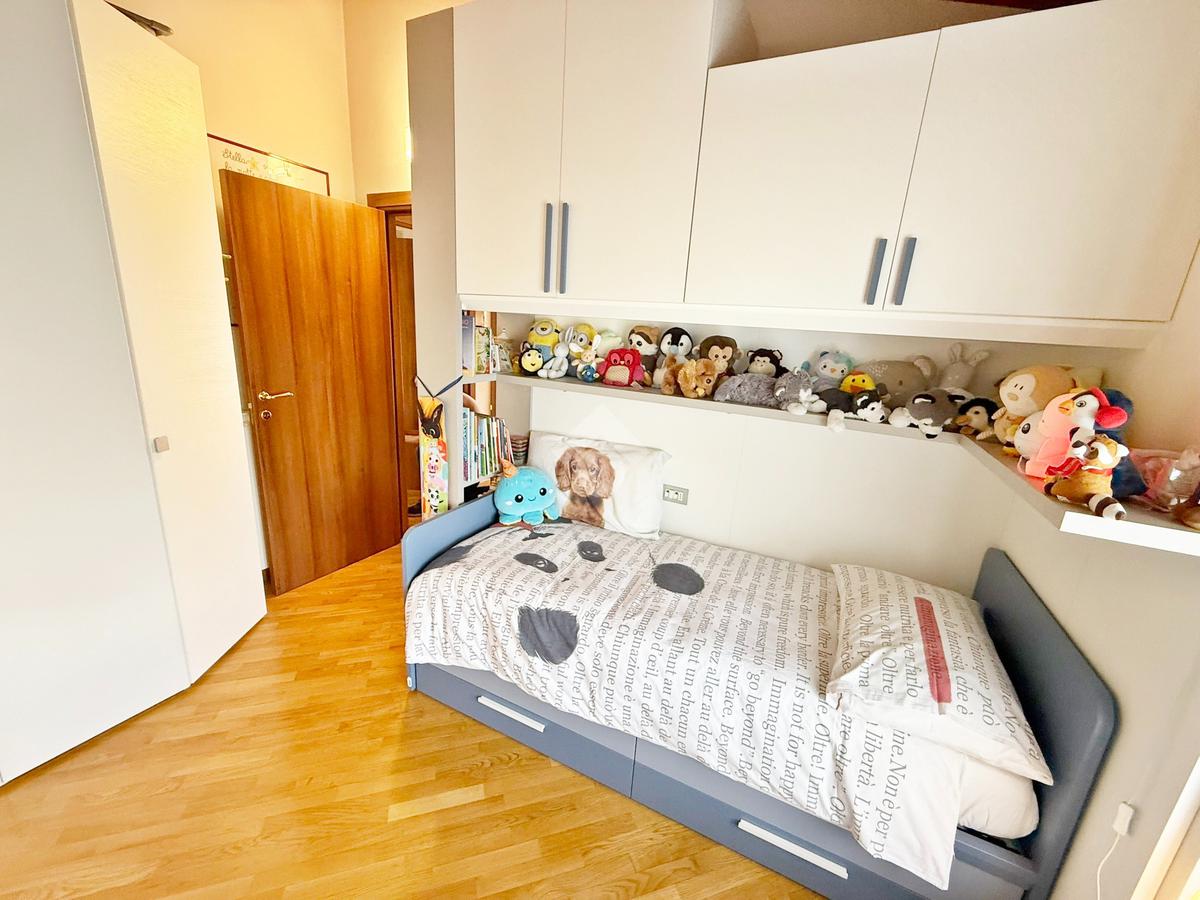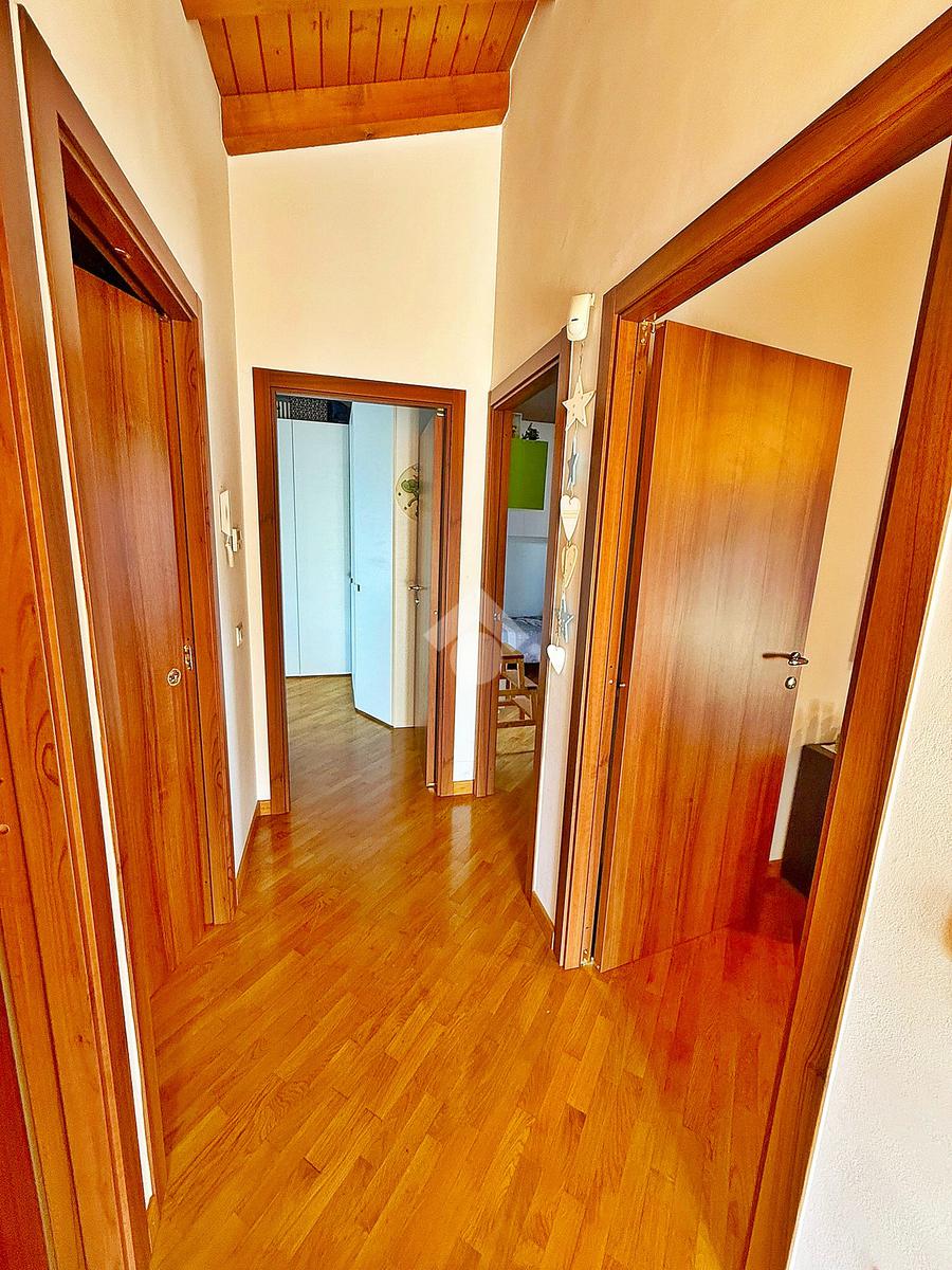 La zona notte è mansardata con travi a vista, ospita tre comode camere da letto delle quali una adibita a cabina armadio, ripostiglio, bagno con vasca e due terrazzi di cui uno da 15mq e l’altro da 23 mq.