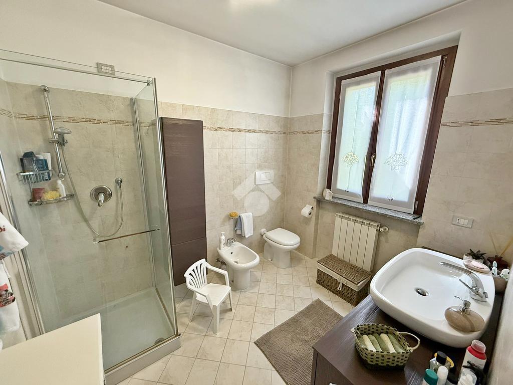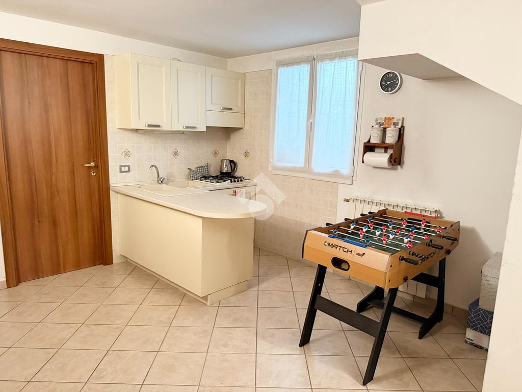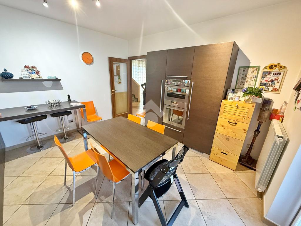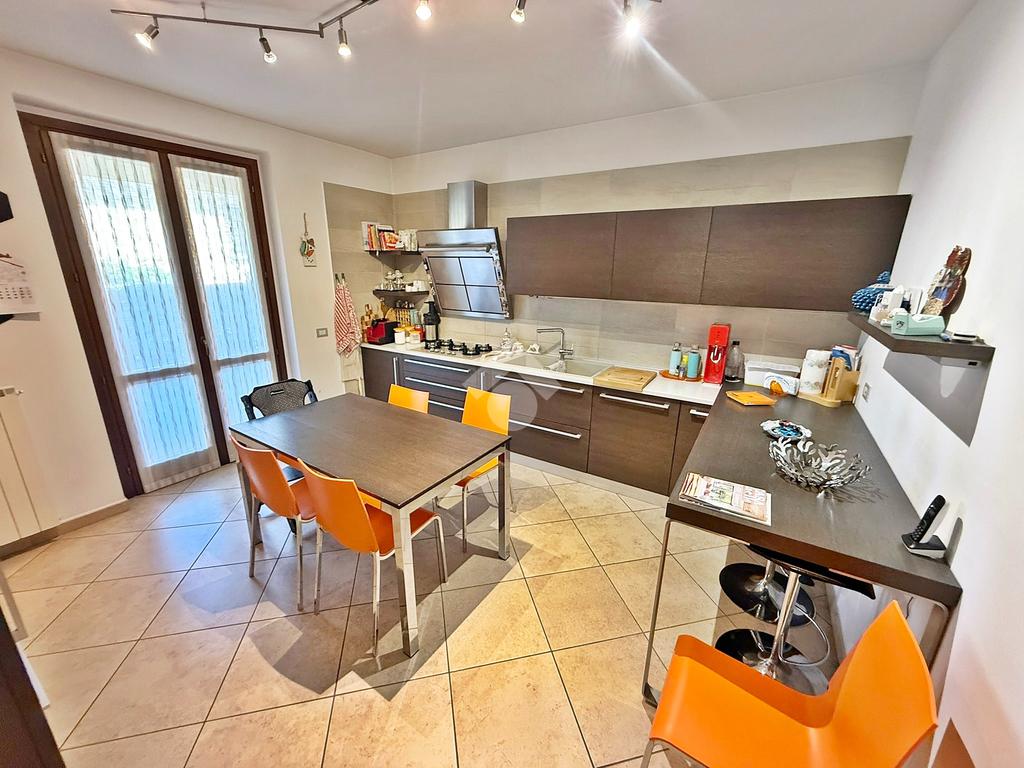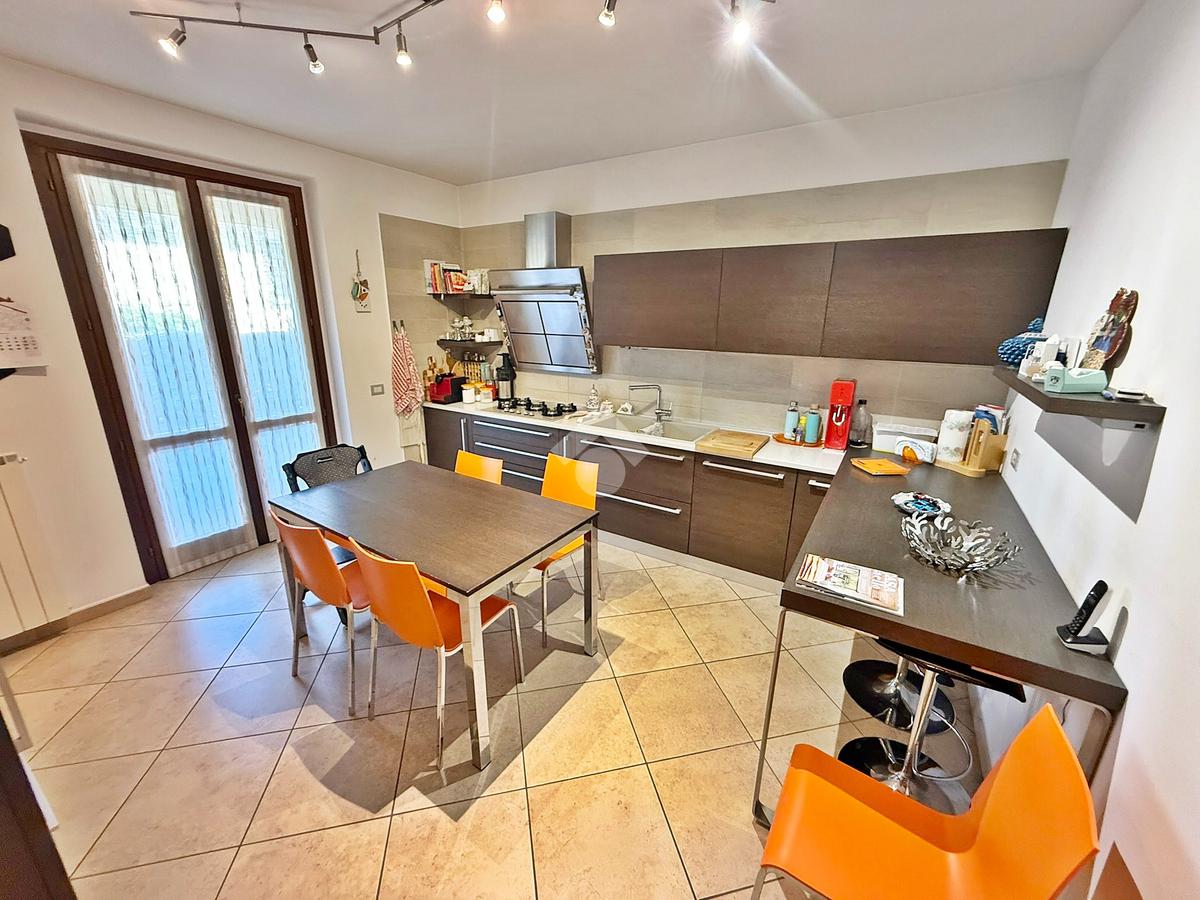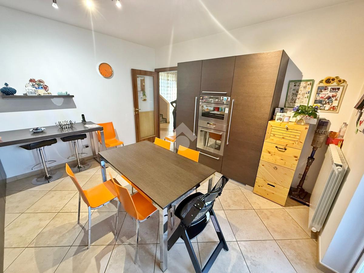 La proprietà è sviluppata su due livelli oltre al piano seminterrato; al piano terreno si trova la zona living, cucina abitabile, bagno con doccia, accesso diretto all'autorimessa doppia e porticato coperto.