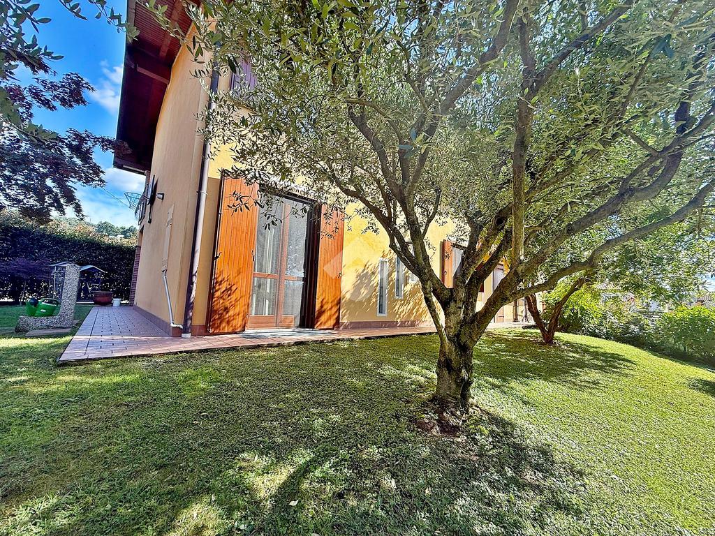 Taino. Recente villa bifamiliare attorniata da 250 mq di giardino pianeggiante.
