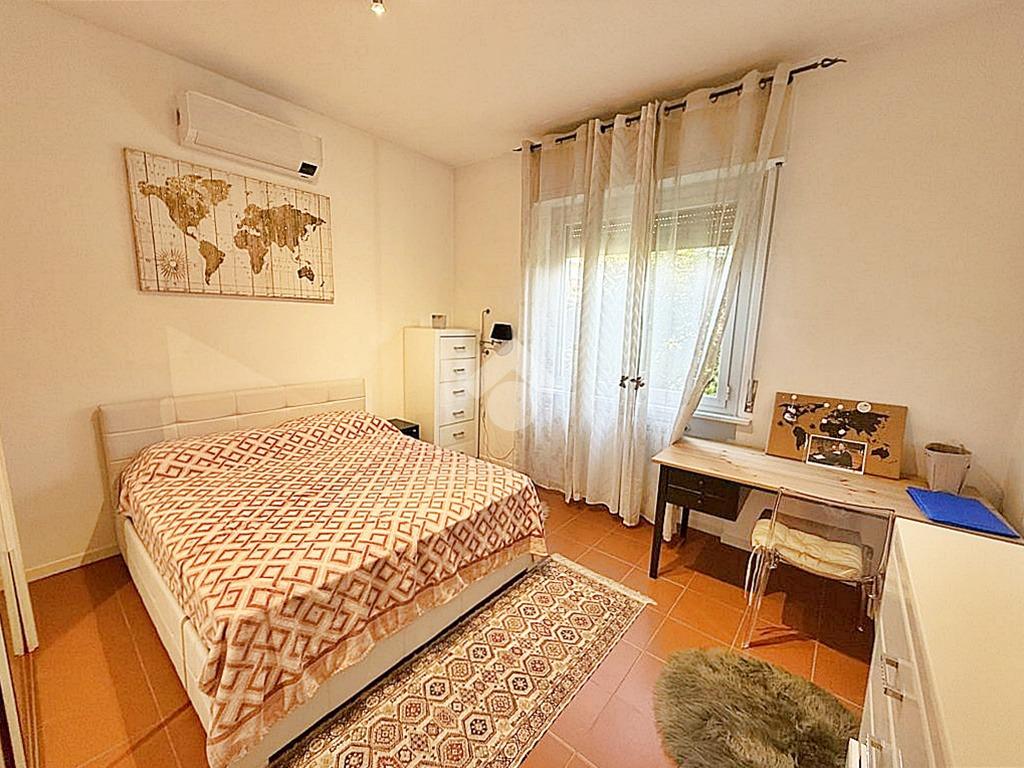 Zona tranquilla e residenziale, villa singola disposta su unico piano abitativo oltre ad un piano semi interrato ad uso accessorio. Piano Rialzato: ingresso, soggiorno con camino, cucina abitabile, due camere matrimoniali, bagno e due balconi. Piano Semi interrato: locale studio, bagno, locale attrezzeria, cantina e box doppio. La villa è stata ristrutturata pochi anni fa, dispone di impianti, bagni, serramenti, pavimenti e rivestimenti in perfetto stato manutentivo. Giardino piantumato e recintato di circa 550 metri quadri. Ottima esposizione solare.