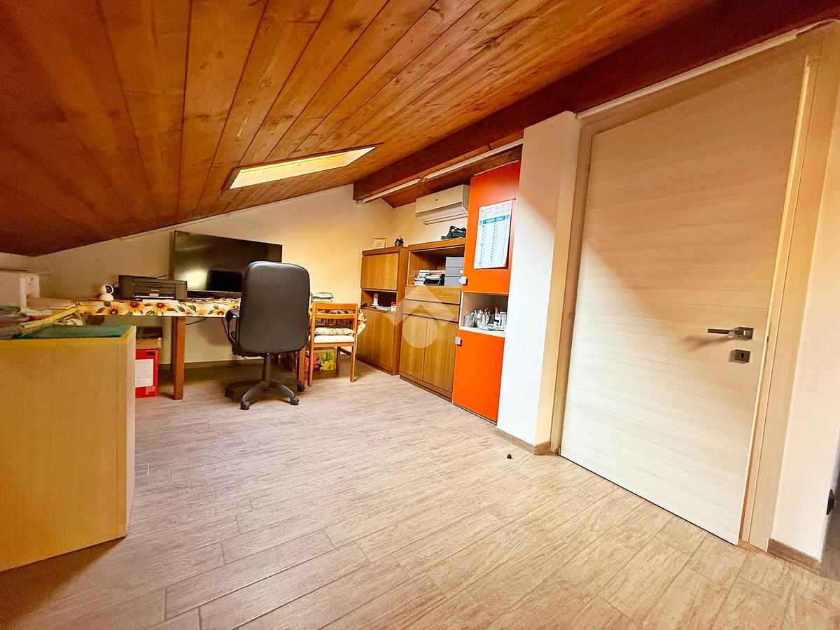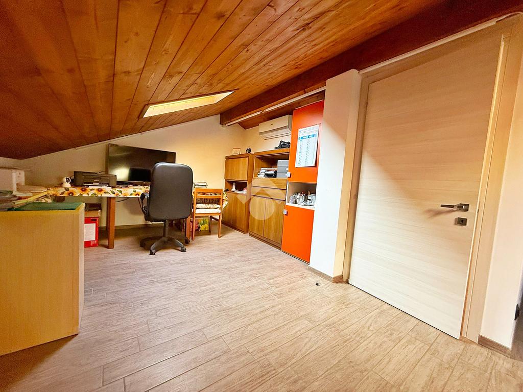 Varano Borghi. Centro. Villa semi indipendente di recente costruzione con quattro camere, box doppio e giardino di proprietà. La villa si sviluppa su due piani abitativi oltre ad un piano sottotetto ed a un piano seminterrato ad uso accessorio. Piano Terra: ampio soggiorno dotato di stufa a Pellet, cucina abitabile, bagno e portico che affaccia sul giardino privato. Piano Rialzato: tre camere da letto e bagno con doccia. Piano sottotetto: camera, studio e bagno. Piano Seminterrato: taverna con camino, lavanderia e cantina. Tutte le finiture sono recenti ed in perfetto stato manutentivo, tutti gli impianti sono funzionanti e certificati, aria condizionata freddo/caldo, zanzariere, tutte le finestre sono con triplo vetro. Autorimessa doppia con soppalco e posto auto coperto. Giardino privato di circa 450 metri quadri interamente recintato e piantumato. Ottima esposizione solare.