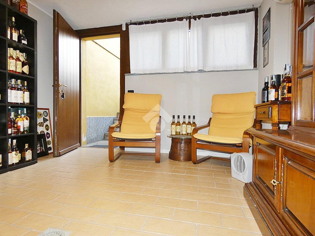 Vergiate. Piccolo cortile vicino al centro, appartamento bilocale semi indipendente con taverna e giardino. L'alloggio si sviluppa su due piani oltre ad un piano semi interrato ad uso accessorio. Piano Terra: soggiorno, cucina e bagno. Piano rialzato con tetto a vista: camera matrimoniale e bagno. Piano Semi interrato: taverna ed e locale hobby. Tutto l'immobile è stato recentemente ristrutturato con impianti serramenti, pavimenti e tetto rifatti a nuovo. Mobilia compresa nel prezzo e nessuna spesa condominiale.